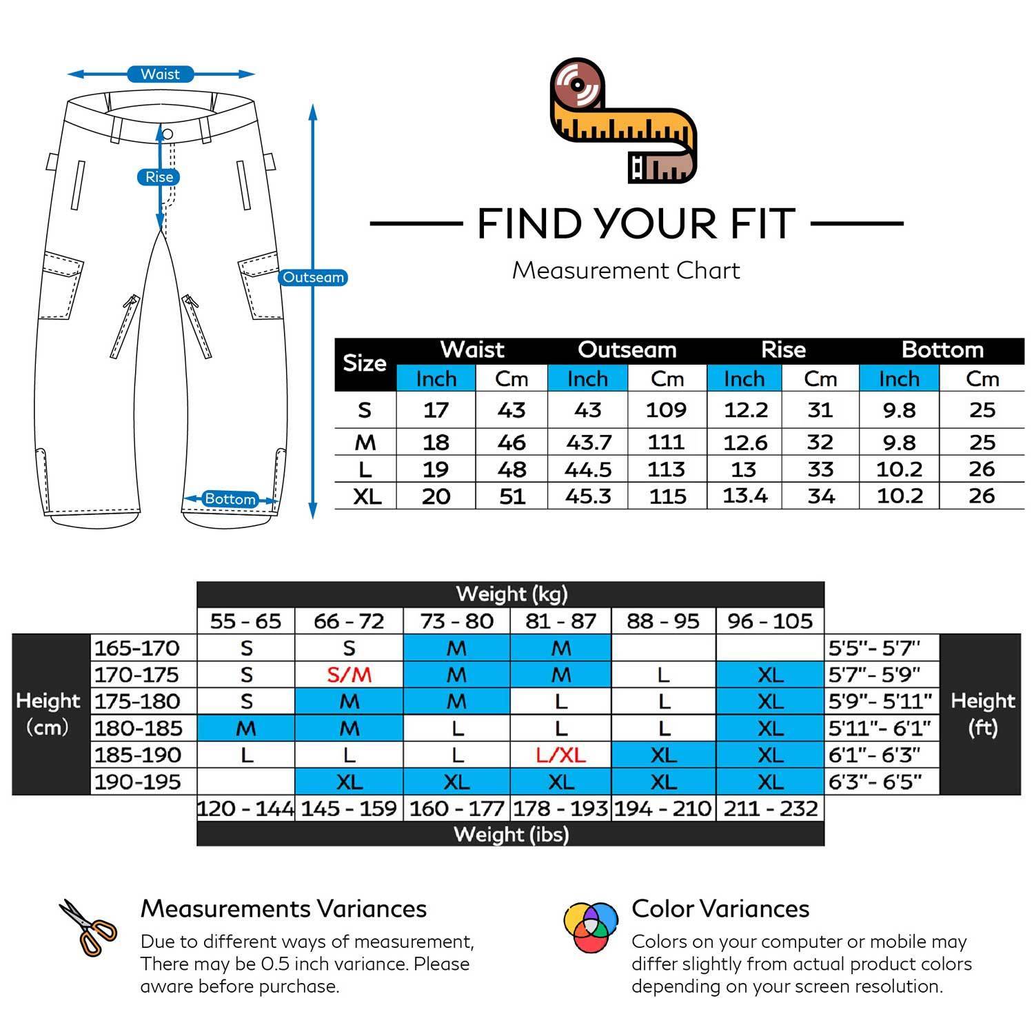 - Rise: Measure the front rise of your pants, start at the bottom center of the crotch seam and measure up to the top of the waistband.