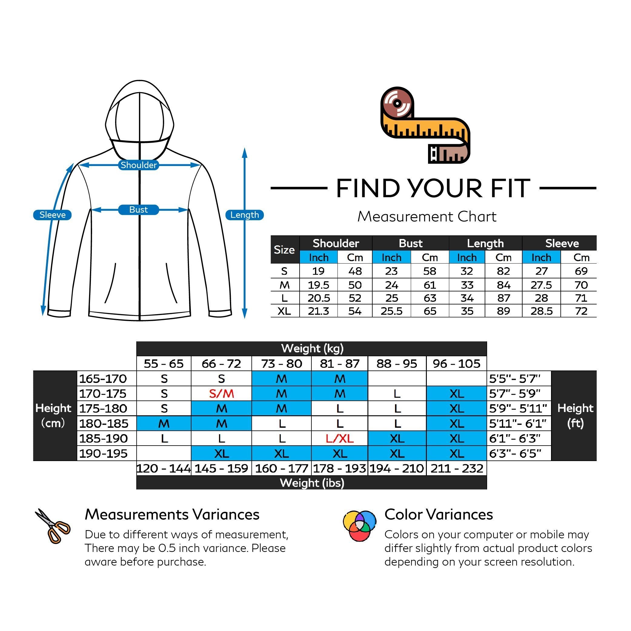 Shoulder, Bust, Sleeve and Length for Jacket.